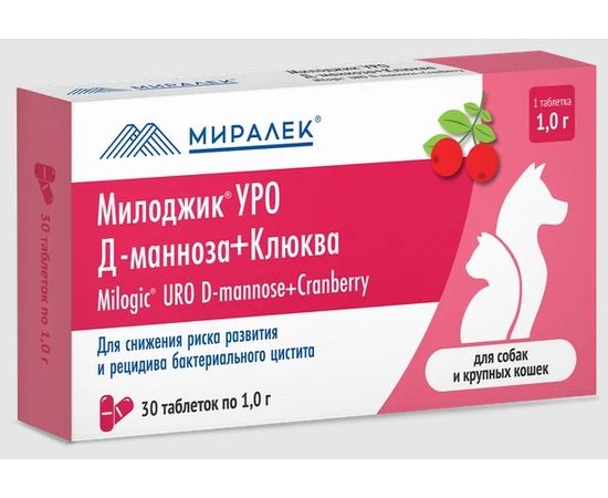 МИЛОДЖИК УРО Д-манноза+клюква 1гр (для собак и крупных кошек), 30 табл