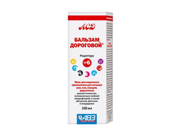 Для ухода за кожным покровом животных. "Бальзам Дороговой" увлажняет, питает и смягчает кожу, снижает риск развития осложнений при разнообразных травмах и способствует заживлению микро- и макроповреждений, снижает риск возникновения воспалительных процессов бактериального, грибкового и вирусного происхождения, снижает риск возникновения дерматитов различной этиологии, укрепляет местный иммунитет, ускоряет процессы грануляции и эпителизации кожи, препятствует формированию келоидных рубцов и некротизированию тканей, рекомендуется как средство вспомогательной терапии при дерматитах различной этиологии, стафилло- и стрептодермии, экземах, ожогах степеней 1, 2, 3А, 3Б (в стадии эпителизации), свищах, трофических, травматических и других поражениях кожи.