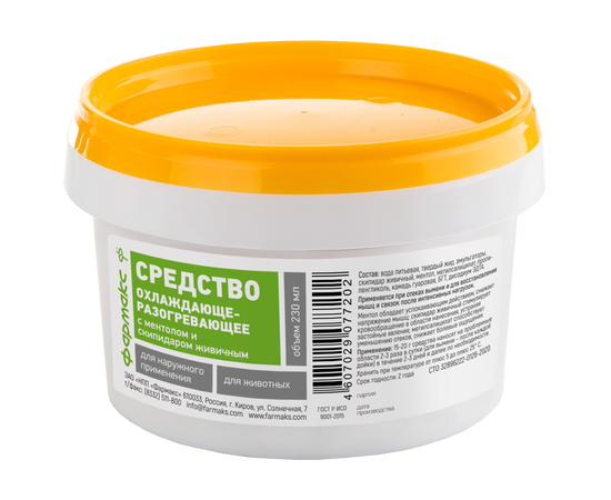 Обладает уникальным двойным действием, обеспечивающим многопрофильный пролонгированный эффект на обменные процессы в тканях за счет чередования процессов релаксации и тонизирования. Моментальное глубокое охлаждение за счет воздействия эфирного масла эвкалипта и ментола оказывает успокаивающее действие, снимает отёчность. Разогревающее воздействие жгучего перца и камфоры активизирует микроциркуляцию, оказывает дренажный эффект, устраняя застойные явления. Специально подобранный фитокомплекс совместно с эфирными маслами облегчает негативные ощущения, способствует проникновению активных компонентов геля. Средство представляет собой однородную массу, не содержащую посторонних включений и примесей, от светло-зеленого до серовато-зеленого цвета, допускается наличие голубоватого оттенка, со специфическим запахом с преобладающими нотами ментола, камфоры. Средство выпускают расфасованным в полимерные флаконы, укупоренные пластмассовыми винтовыми колпачками по 250, 500 и 1000 мл, или в тубы из комбинированного материала с бушонами по 75, 100, 125, 150, 175, 200, 225, 250 мл, помещенными в пачки из картона коробочного, или упаковки типа "саше" по 5, 10, 15, 20 мл.