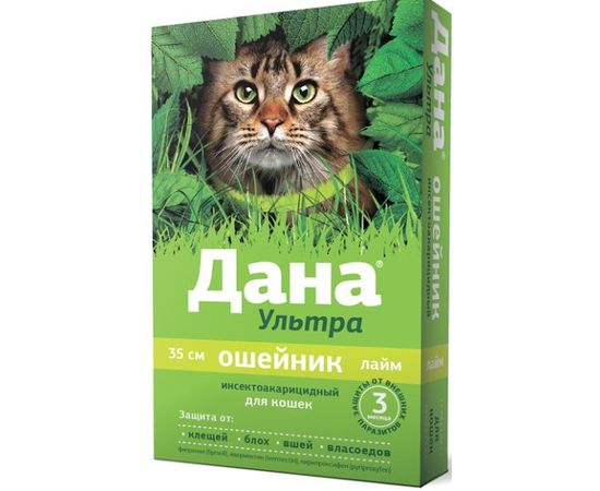 Дана Ультра ошейник 35см от блох, клещей для кошек, цвета лайм