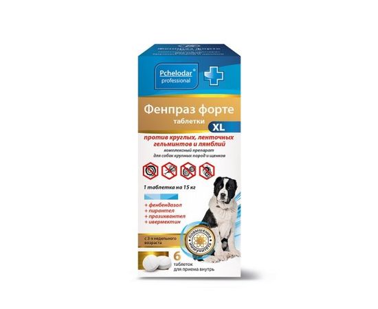 ПЧЕЛОДАР Фенпраз таблетки XL крупных пород собаки 6 таб. ( 1 таб на 15 кг)