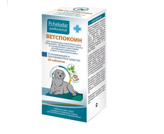 Таблетки Ветспокоин для средних и крупных собак, 30 шт