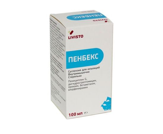 Пенбекс - комплексный антибактериальный препарат, содержащий в составе два антибактериальных компонента (пенициллин G прокаин и дигидрострептомицина сульфат), глюкокортикоид (бетаметазон), антигистаминное средство (хлорфенирамина малеат) и местный анестетик (прокаин гидрохлорид).