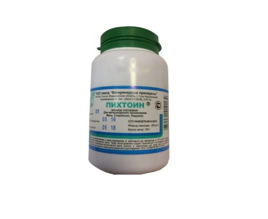 Пихтоин - лекарственное средство в форме мази, содержащее в своем составе в качестве действующего вещества живицу сосновую (20%), а в качестве вспомогательных веществ воск пчелиный или вощину, мел химически осажденный и масло индустриальное.