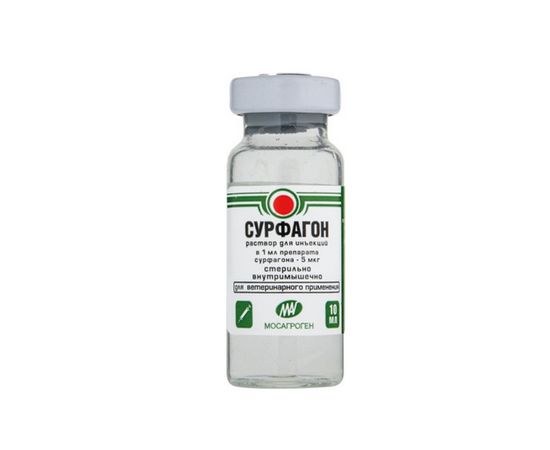 Гормональное лекарственное средство, содержащее в 1 мл препарата 5 или 10 мкг сурфагона (аналог гонадотропин-рилизинг гормона люлиберина), а также хлорид натрия, нипагин и воду для инъекций.