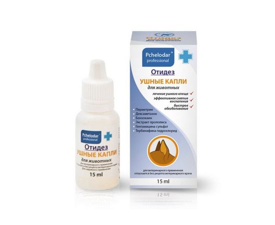 Высокоэффективные ушные капли Отидез, предназначенные для лечения острых и хронических отитов, поверхностных дерматитов наружного уха и слухового прохода бактериальной, грибковой, аллергической и паразитарной этиологии у животных. Действующие вещества препарата оказывают выраженное антибактериальное, противогрибковое, акарицидное, противовоспалительное, противоаллергическое, ранозаживляющее и обезболивающее действие.