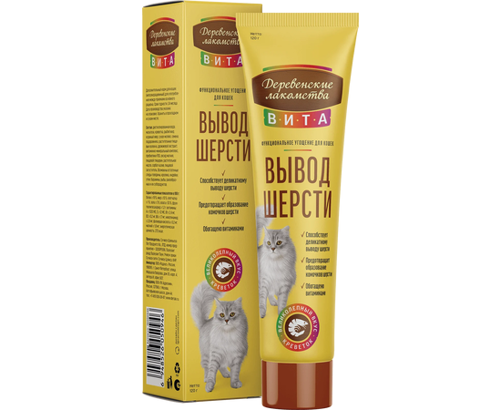 Деревенские лакомства Паста «Вита. Вывод шерсти» со вкусом креветки 120 гр