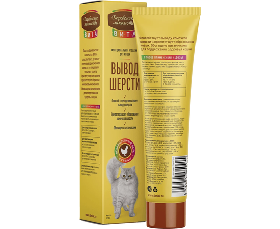 Деревенские лакомства ВИТА паста для вывода шерсти со вкусом курицы для кошек 120 гр