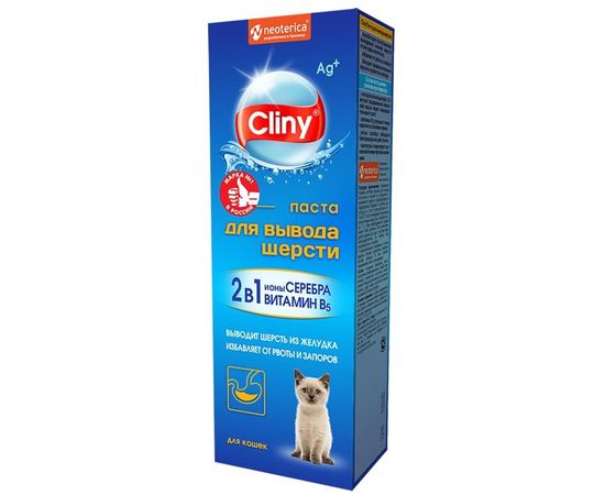 Паста для вывода шерсти Cliny способствует естественному выведению комков шерсти (безоаров) из желудка животных. Избавляет кошек от рвоты, потери аппетита, закупорки кишечника, запоров. Обладает привлекательным для кошек вкусом и ароматом солода.