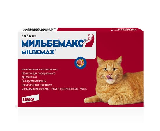 Мильбемакс®, таблетки от гельминтов для крупных кошек – 2 таблетки Elanco