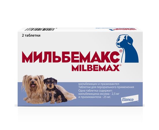 Мильбемакс таблетки для собак в качестве действующих веществ содержат мильбемицина оксим и празиквантел. Выпускают препарат в двух модификациях: "Мильбемакс таблетки для щенков и маленьких собак" с содержанием в одной таблетке мильбемицина оксима – 2,5 мг, празиквантела – 25 мг и "Мильбемакс таблетки для крупных собак" с содержанием мильбемицина оксима – 12,5 мг и празиквантела – 125 мг/табл.