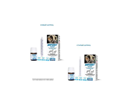 «Диронет» суспензия в 1 мл в качестве действующих веществ содержит: пирантела памоат – 15 мг, празиквантел – 5 мг и ивермектин – 0,006 мг и вспомогательные вещества.