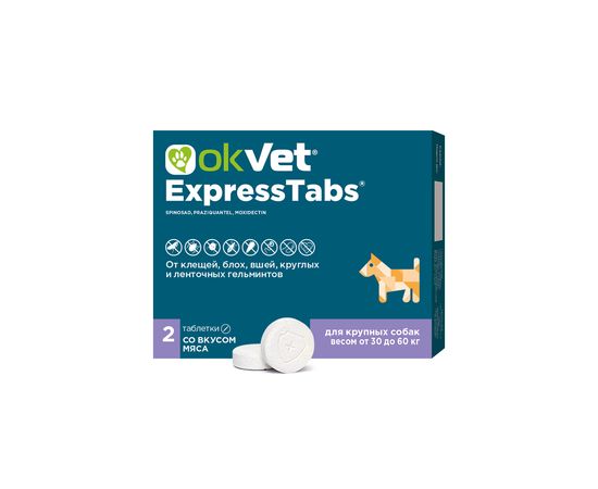 АВЗ ЭкспрессТабс таблетки от клещей, блох, вшей и гельминтов для собак от 30 кг до 60 кг
