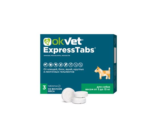 АВЗ ЭкспрессТабс таблетки от клещей, блох, вшей и гельминтов для собак от 5 кг до 15 кг