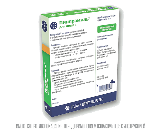 Предварительной голодной диеты и применения слабительных средств перед дегельминтизацией не требуется. С лечебной целью кошек дегельминтизируют по показаниям, с профилактической целью – ежеквартально, а также перед каждой вакцинацией и случкой в терапевтической дозе. Побочных явлений и осложнений при применении препарата в соответствии с инструкцией, как правило, не наблюдается. У некоторых кошек (чаще у котят) могут наблюдаться вялость, атаксия, тремор мышц, рвота и/или диарея. В этих случаях применение препарата прекращают и животному назначают средства симптоматической терапии. При передозировке лекарственного препарата у некоторых кошек может наблюдаться тремор, симптомы которого самопроизвольно исчезают в течение суток и не требуют применения лекарственных средств. Пинпрамиль® для кошек совместим с селамектином, сведения о совместимости препарата с другими макроциклическими лактонами отсутствуют. Особенностей действия при первом применении и при отмене лекарственного препарата не выявлено. При проведении дегельминтизации следует придерживаться рекомендуемых инструкцией сроков. В случае пропуска очередной обработки применение препарата возобновляют в той же дозе по той же схеме. Пинпрамиль® для кошек не предназначен для применения продуктивным животным.