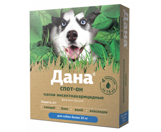 Дана капли Спот-Он от блох для собак и щенков от 20кг (4 пип)