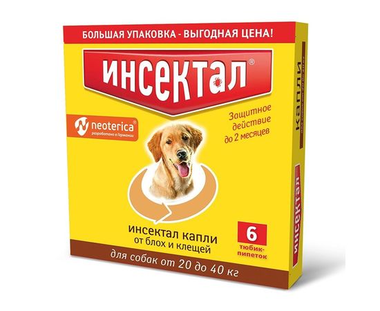 Капли Инсектал для собак весом 20-40 кг (6 пипеток)