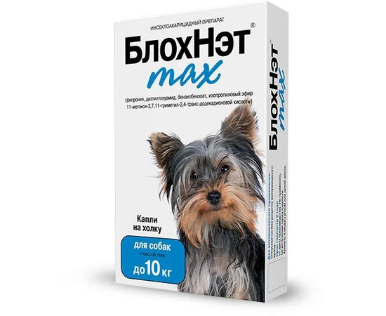 гиперчувствительности непосредственно к компонентам препарата. Запрещается применение БлохНэт®max собакам массой менее 2 кг, щенкам моложе 10-недельного возраста. Не допускается аурикулярное применение препарата (при лечении ушной чесотки) при прободении барабанной перепонки.