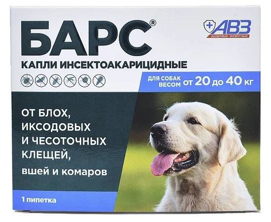 Капли БАРС для собак от блох от 20-40кг АВЗ