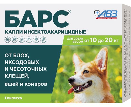 Капли БАРС для собак от блох от 10-20кг АВЗ