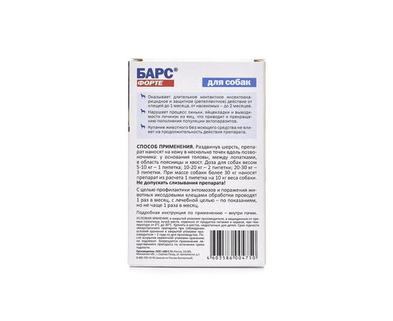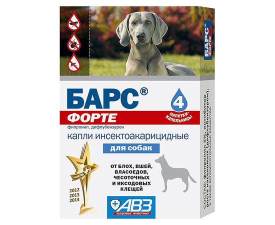 Капли БАРС ФОРТЕ для собак 4 пипетки инсектоак. (1 пип- 10кг)