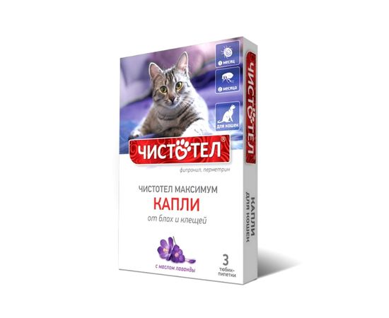 Капли Чистотел МАКСИМУМ от блох д/кошек 3 пип //70 , C601