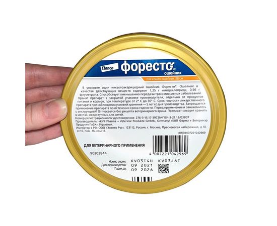 В ошейнике длиной 38 см - 1,25 г имидаклоприда и 0,56 г флуметрина. Форесто® – препарат наружного действия.