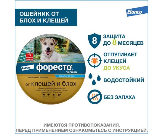 Форесто® ошейник от клещей и блох для собак до 8кг Elanco,5479