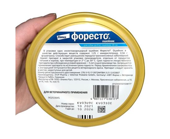 В ошейнике длиной 38 см - 1,25 г имидаклоприда и 0,56 г флуметрина. Форесто® – препарат наружного действия.