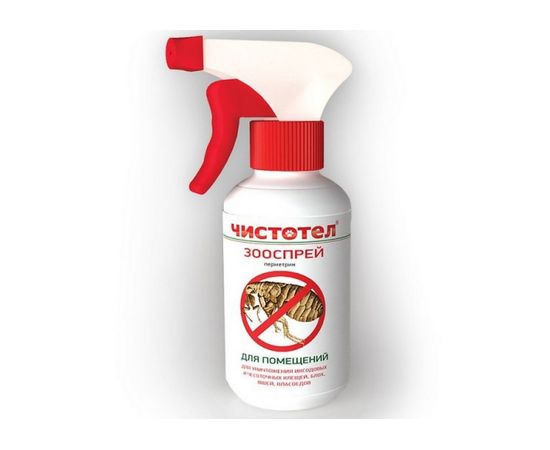 В целях уничтожения эктопаразитов в помещении и предотвращения повторной инфестации животных будки,клетки, подстилки и попоны обрабатывают Чистотел спреем из расчета 2 мл на 1 м2 обрабатываемой поверхности. Одно нажатие на распылительную головку флакона объемом 200 мл обеспечивает дозу препарата, равную 0,5 мл.