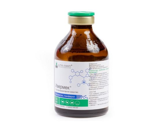 Ивермек® выпускается расфасованным по 1, 20, 50, 100, 250 мл в стеклянные флаконы и по 500 мл в стеклянные бутылки, укупоренные резиновыми пробками, укрепленными алюминиевыми колпачками с клипсами контроля первого вскрытия.