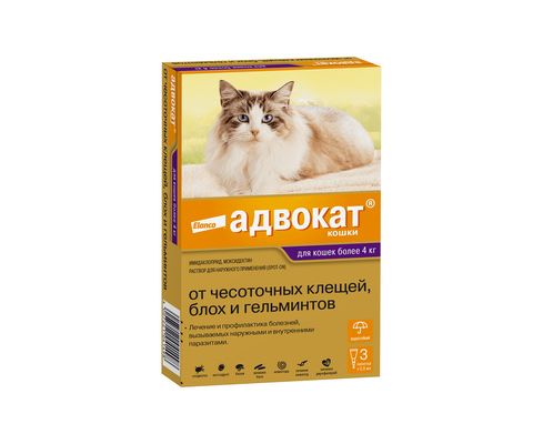 Адвокат® капли для кошек от 4 кг до 8кг - 3 пипетки Elanco