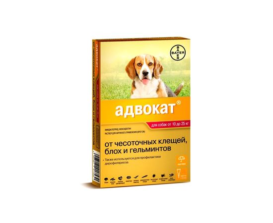 Адвокат® капли для собак от 10 до 25кг – 3 пипетки Elanco