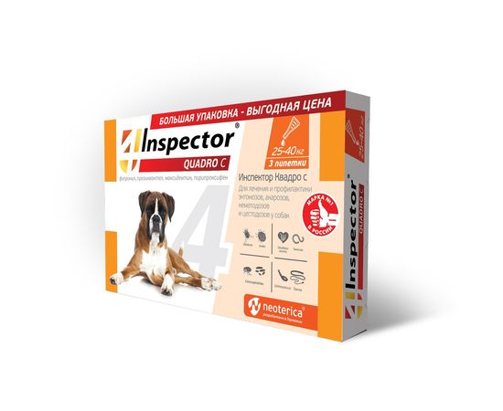 Капли ИНСПЕКТОР КВАТРО для собак 25-40 кг ( 3 пипетки )