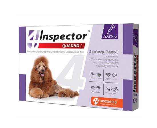 Капли ИНСПЕКТОР КВАДРО для собак 10-25 кг (1 пипетка)