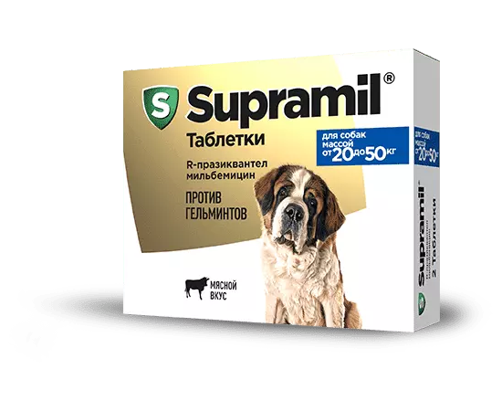 Supramil – это новый российский антигельминтный препарат широкого спектра действия с улучшенным составом для собак. Supramil максимально безопасно воздействует на организм животных.