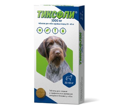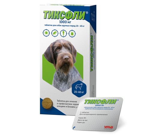 Препарат Тиксфли (1х1000мг) для собак крупных пород 20-40кг, 1 таблетка
