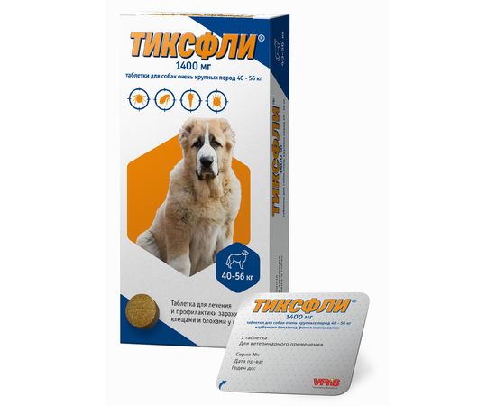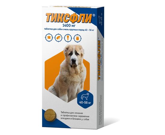 Препарат Тиксфли (1х1400мг) для собак очень крупных пород 40-56кг, 1 таб.