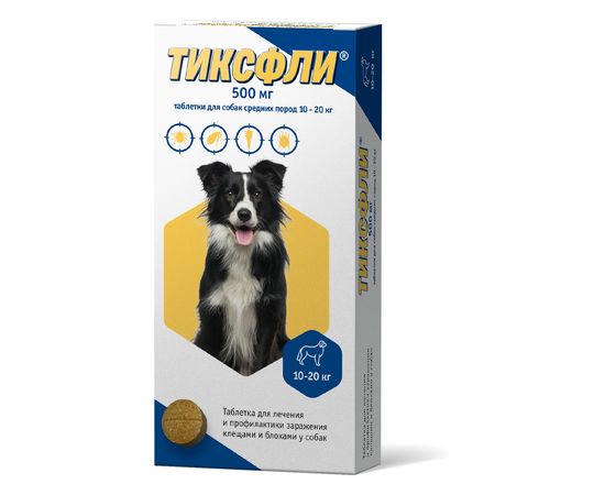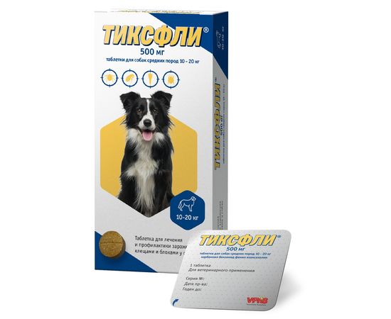 Препарат Тиксфли (1х500мг) для собак средних пород 10-20кг, 1 таб.