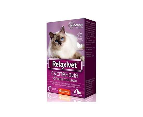 Релаксивет суспензия успокоительная предназначена для коррекции нежелательного поведения при стрессах, страхах и возбуждении у кошек и собак.