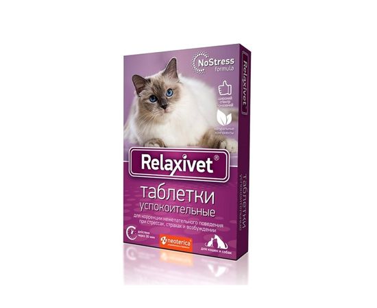 Релаксивет таблетки успокоительные предназначены для коррекции нежелательного поведения при стрессах, страхах и возбуждении у кошек и собак.