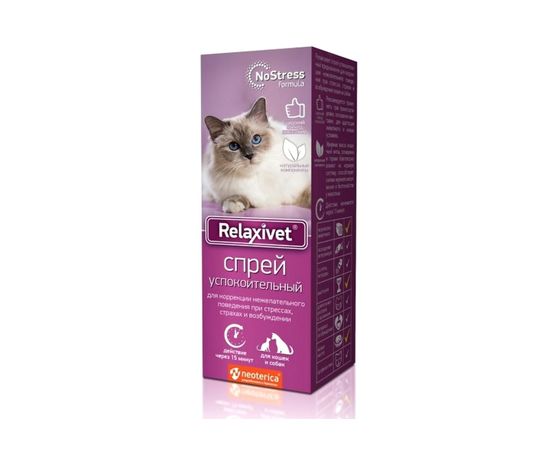 Релаксивет спрей успокоительный предназначен для коррекции нежелательного поведения при стрессах, страхах и возбуждении у кошек и собак.