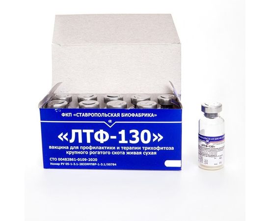 Вакцина для профилактики и терапии трихофитоза крупного рогатого скота ЛТФ-130 живая сухая 1 флакон (20 доз.)