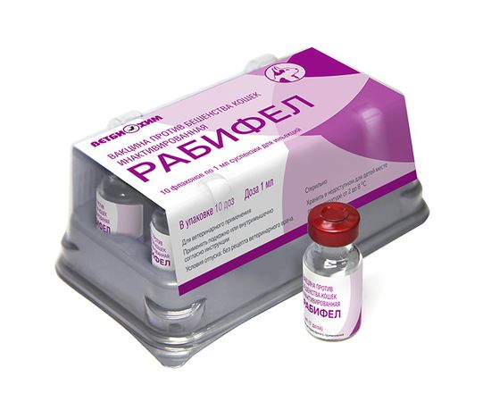 Международное непатентованное наименование: Вакцина против бешенства кошек инактивированная "Рабифел".