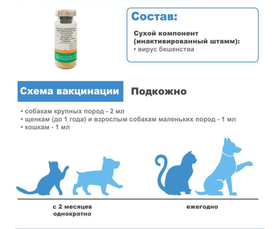 Вакцина предназначена для профилактической и вынужденной вакцинации собак и кошек против бешенства.