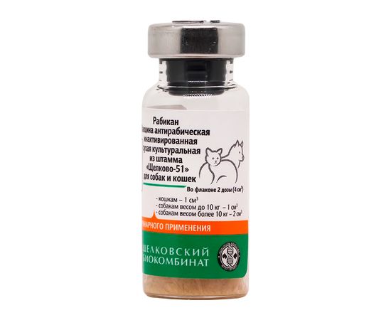 Рабикан, вакцина от бешенства инактивированная сухая культуральная из штамма Щелково-51(1 флакон-2 дозы)