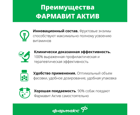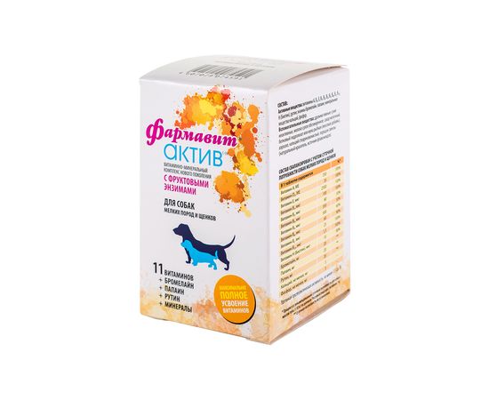 Фармавит Актив – витаминно-минеральный комплекс с фруктовыми энзимами, специально разработанный для собак мелких пород и щенков