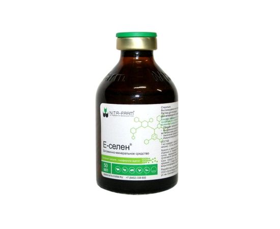 профилактики заболеваний, вызванных дефицитом витамина Е и селена в организме животных. Препарат по внешнему виду представляет собой опалесцирующую в проходящем свете, прозрачную бесцветную или слабо желтогоцвета жидкость. Е-селен выпускают расфасованным по 50, 100 мл в стеклянных флаконах.