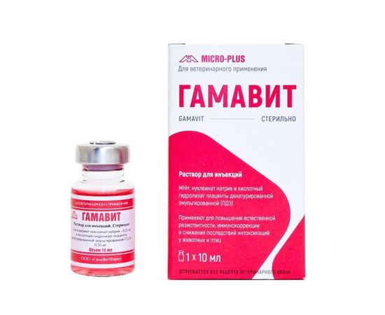 Гамавит применяют для повышения естественной резистентности, иммунокоррекции и снижения последствий интоксикаций у животных и птиц.