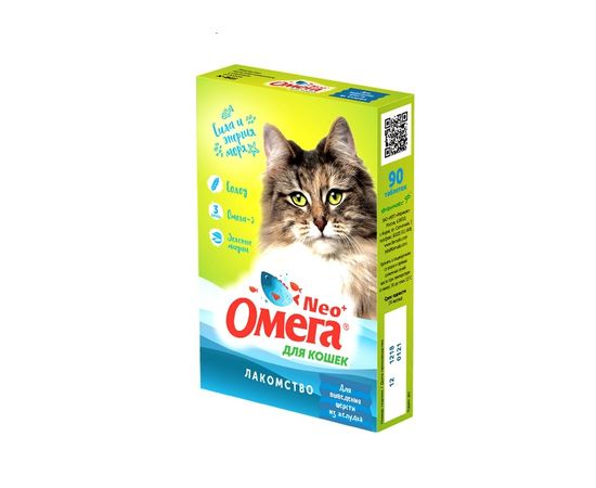 Витамины Омега НЕО+ для кошек с ржаным солодом, выведение шерсти, №90
